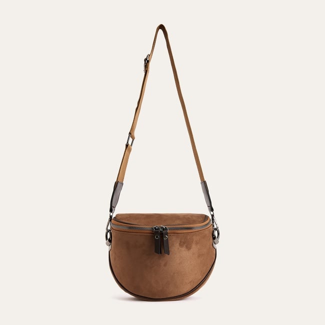 Yumuşak dokusu, çantaya sıcak ve davetkar bir his kazandırırken, yuvarlak hatlı tasarımı modern bir silüet sunar. Ayarlanabilir omuz askısı, kişisel konforunuza göre kullanım kolaylığı sağlar. Çift katmanlı fermuar detayı ve bu detayı tamamlayan altın renkli metal aksesuarlar, çantanın minimalist tasarımına zarif bir hareketlilik katar. Hem gündüz hem de akşam görünümlerinizi tamamlayacak bu omuz çantası, sadeliğin gücünü yansıtır.