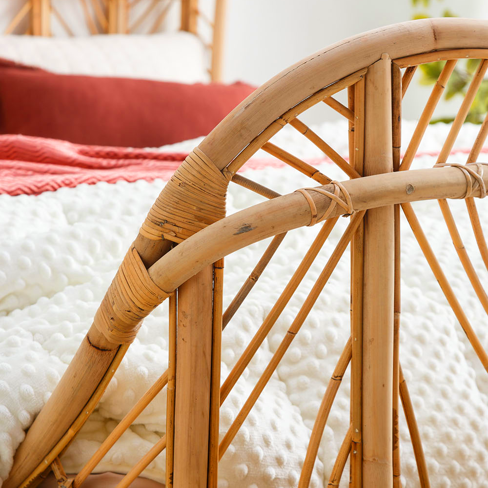 Koleksiyonun dayanıklılığı ve doğal görünümü baz alarak, ana malzemeler olarak rattan ve bambu seçilmiştir. Bu materyaller dayanıklılığını sürdürürken, estetik yapısıyla doğayı evinize taşıyor.