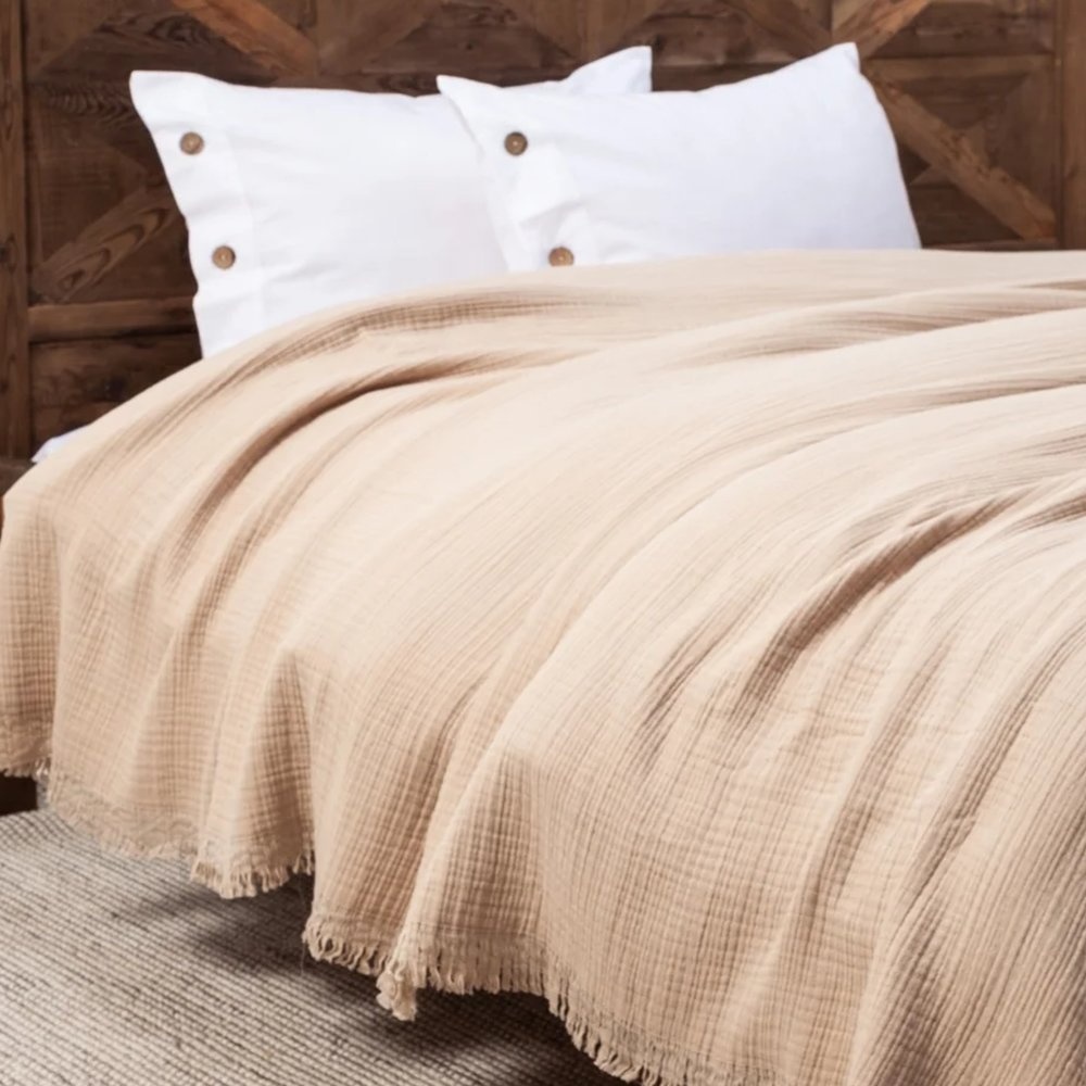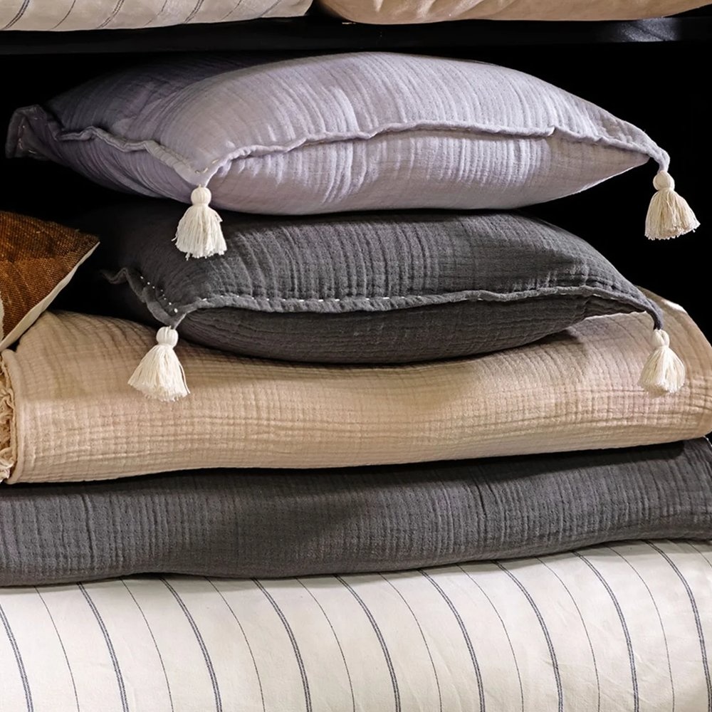 Müslin kumaşlar, %100 pamuktan üretilir ve dokuma şekli sayesinde uzun yıllar kullanılabilir. Müslin kumaşın hafifliği, yumuşaklığı ve nefes alabilirliği ile tanınan özelliklerini koleksiyonunda kullanarak, rahat ve şık ev tekstili ürünlerini sizlerle buluşturuyoruz.