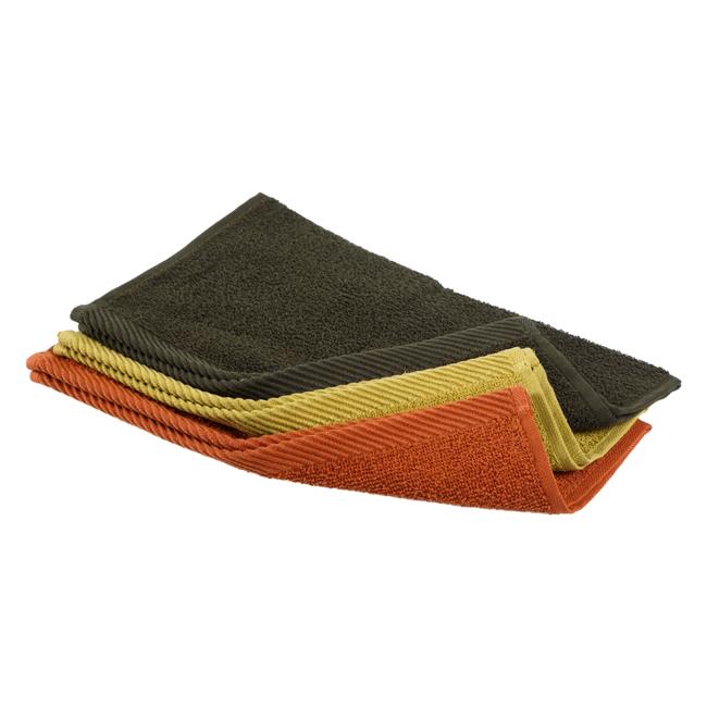 Üç farklı renkte basic el havlusu seti. Rahat asılabilmesi için bir kenarında kumaş askı yeri detayı bulunmaktadır.