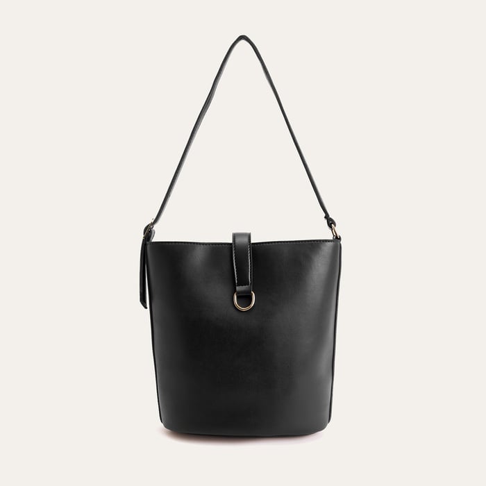 Deri görünümlü yüzeyi ve toka detayıyla öne çıkan bu omuz çantası, şehirli ve dinamik stilinize şık bir tamamlayıcıdır. Minimalist tasarımı, pratikliği zarafetle birleştirerek günlük kullanımda ve özel anlarda size eşlik eden bir aksesuar sunar. Siyah rengi, her türlü kombininizle uyum sağlarken, ön plandaki altın rengi toka detayı tasarıma estetik bir görünüm katar. Bu çanta, zarafeti ve minimalizmi benimseyen modern kadının stilini tamamlar.