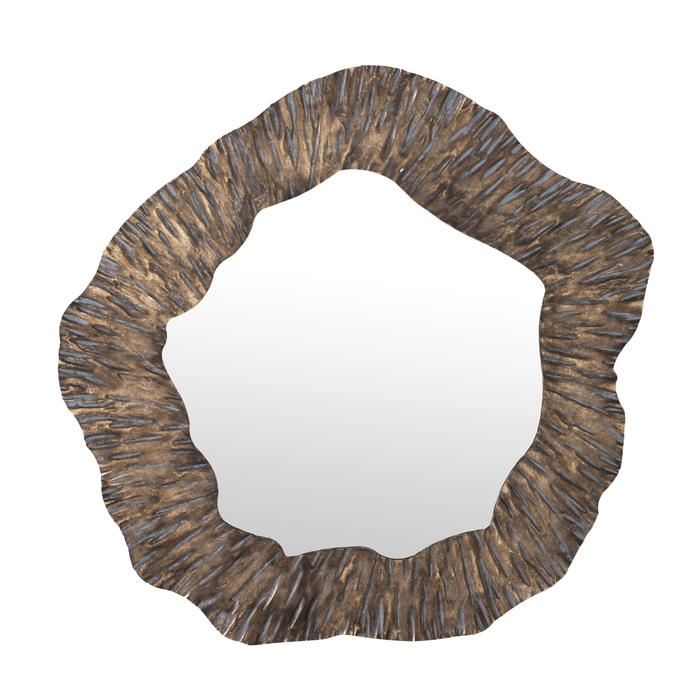 Toledo duvar aynası, rustik ve bohem tarzı bir araya getirerek yaşam alanlarına otantik bir dokunuş sunar. Sanatsal ve özgün tasarımıyla, bulunduğu ortama estetik bir derinlik ve doğallık kazandırır. Düzensiz şekilli çerçevesi, metalik bronz ve altın renk tonlarıyla birleşerek el işçiliği hissi uyandırır ve aynayı standart tasarımlardan ayırır. Dokulu yüzeyi, ışığı farklı açılardan yansıtarak dinamik bir görünüm oluşturur.
