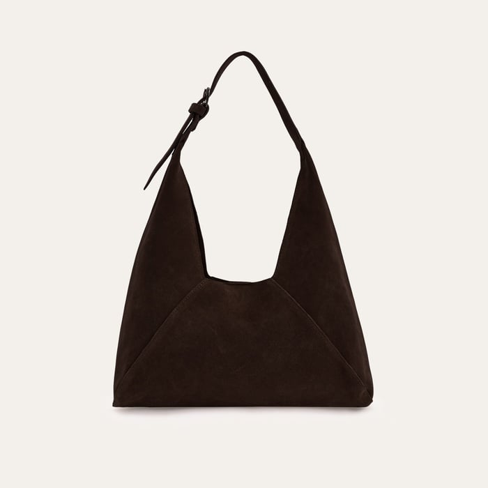 Tasarımın merkezinde yer alan özgün üçgen silüet, çantaya çağdaş bir hava katarak onu klasik tote çantalardan ayırır. Ayarlanabilir omuz askısı, çantayı hem pratik bir omuz çantası hem de el çantası olarak kullanmanıza olanak tanır ve çok yönlü bir deneyim sunar. Minimalist dikiş detayları, tasarımın bütünlüğünü vurgular. Geniş iç hacmi sayesinde telefon, cüzdan, anahtar gibi temel ihtiyaçlarınızın yanı sıra daha büyük eşyalarınızı da rahatça taşıyabilirsiniz. Kahverenginin sıcak tonu ise çantayı pek çok kombinle uyumlu hale getirir.