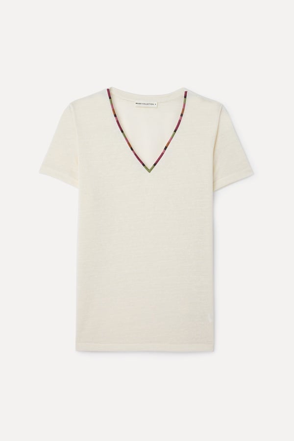 MODAL KARIŞIMLI V YAKA T-SHIRT KIRIK BEYAZ