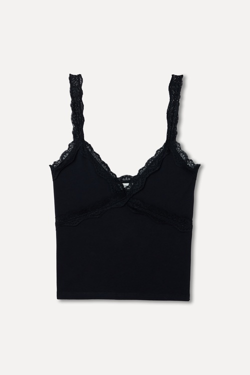 DANTELLİ FITTED AÇIK YAKA ATLET SİYAH