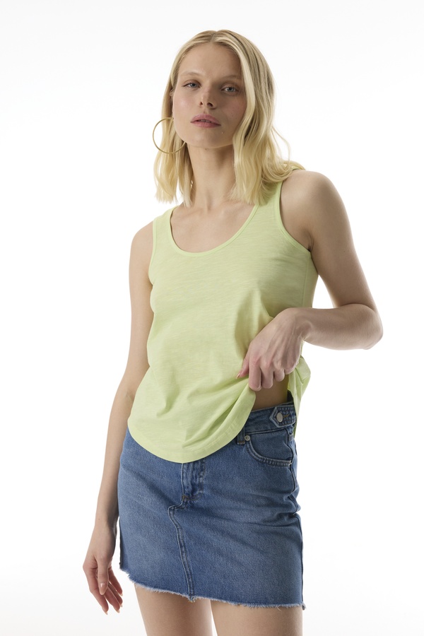Zamansız şıklığın anahtarı u yaka atlet ile kombinlerinize taşınıyor. Sade ancak etkileyici bir görünüm oluşturmak isteyenler için özel tasatlanan atlet; hafif dokusu, vücuda oturan yapısı ve feminen çizgileriyle hem tek başına hem de katmanlı kombinlerde favoriniz olacak. Günlük stilinizde konfor ve şıklığı birleştirecek atleti jean pantolonlardan maxi eteklere pek çok parçayla kombinleyebilirsiniz.