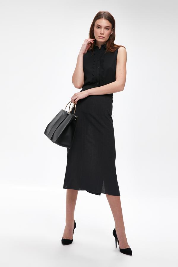 Hafif kumaşı ile dikkat çeken uzun kalem etek, sezonun öne çıkan parçaları arasında yerini alıyor. Zıt renkte üstleriniz ve sandaletleriniz ile kullanarak hoş bir stil yaratabilirsiniz.
