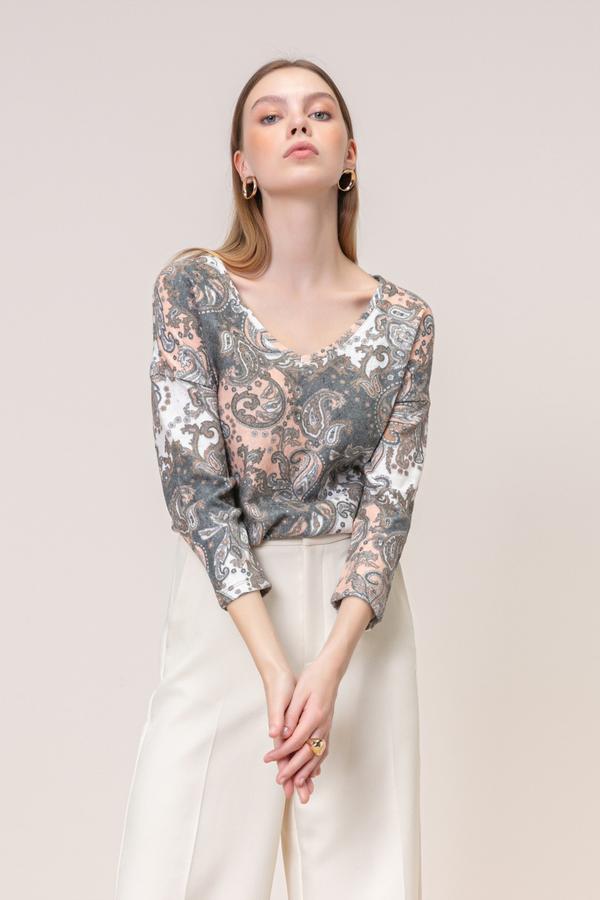 V YAKA DESENLİ TRİKO SWEATSHIRT