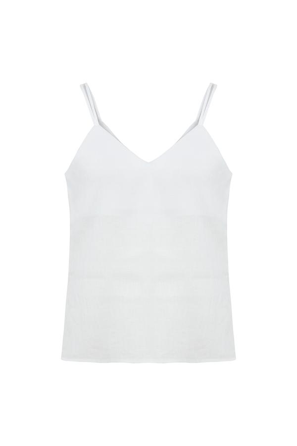V YAKA KETEN BLUZ