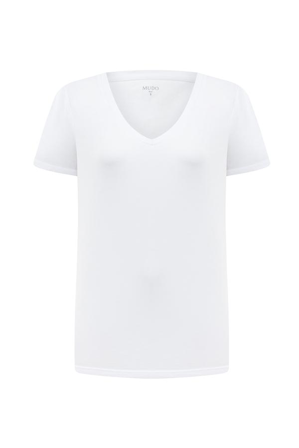 V kısa kollu tişört modelleri Mudo'da! %100 pamuk kumaştan üretilen kısa kollu tişört modelini dört mevsim rahatlıkla kullanabilirsin. Pantolon, etek ve şortlarınla kullanabileceğin pamuklu kısa kollu tişört farklı renk seçenekleriyle beğenine sunuluyor.