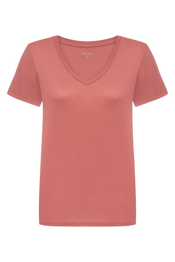 V YAKA KISA KOLLU VİSKON T-SHIRT