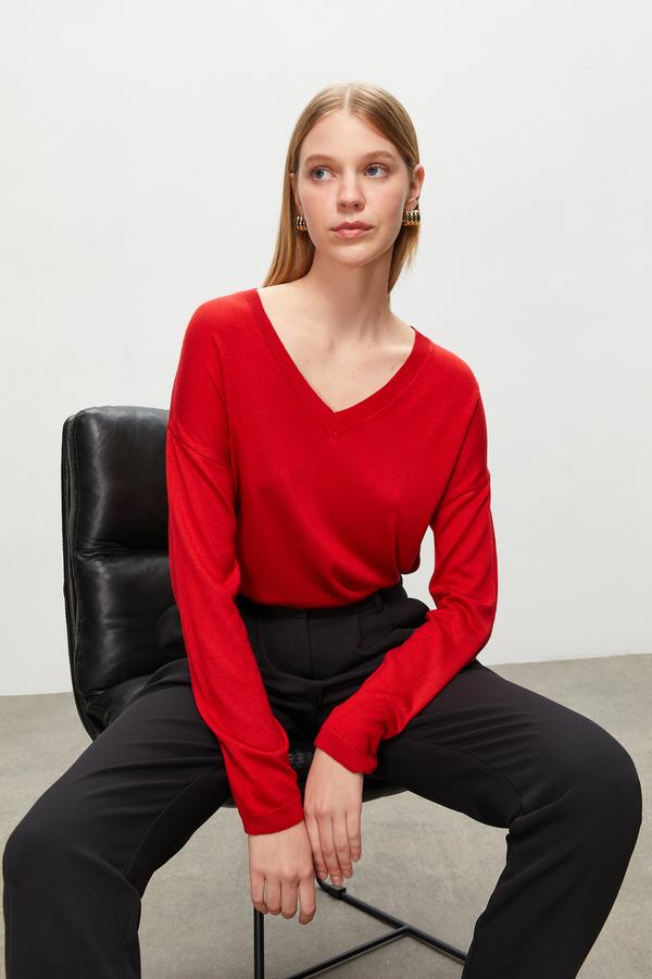 Bol kesimiyle dikkat çeken triko kadın kazak, farklı renk seçenekleriyle tarzınıza uygun seçenekler sunuyor. Yumuşak triko kumaşı, gün boyu konfor sağlayan v yaka kadın kazak, hem şıklığı hem de kullanışlılığı bir arada sunuyor.