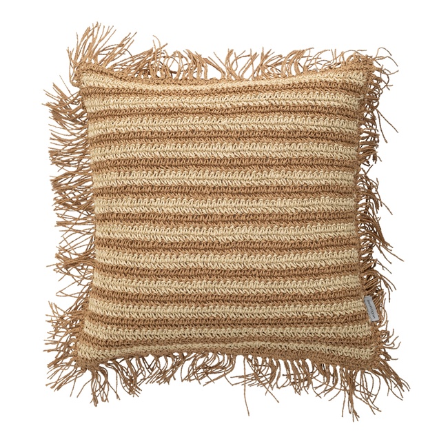 Belirgin örgü yapısı, kenarlarını süsleyen püskül detayları ve çizgili deseniyle dikkat çeken Valentina Line kırlent, bej ve kahverengi tonları sayesinde farklı renk paletleriyle kolayca uyum sağlar. Oturma odasında, okuma köşesinde veya yatak odasında kullanılarak mekana sıcak ve rahat bir hava katar.