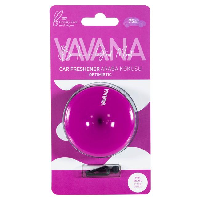 Pembe orkide notalarıyla öne çıkan çiçek esintilerini hissedeceğiniz vavana araba kokusu, aparatı sayesinde aracınızın havalandırma ızgaralarına kolayca takılır. Sade ve şık tasarımıyla öne çıkan birbirinden farklı renk ve koku içerikleriyle sizi yansıtacak araba kokuları 75 güne kadar etkisini sürdürüyor.