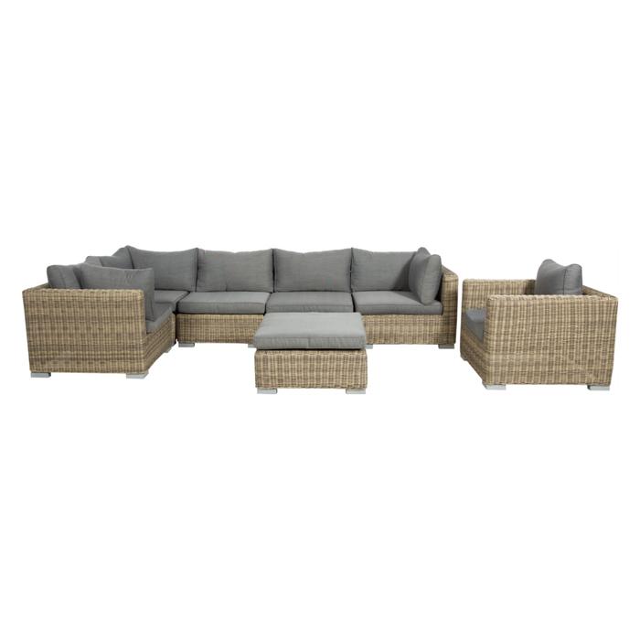 Hafiflik ve yüksek dayanım özelliği ile bilinen alüminyum ve güneş ışınlarına dayanıklı sentetik rattan kullanılarak yapılan Vella köşe seti, doğal görünümlü tasarımıyla dış mekanlarda güzel havaların tadını çıkarabileceğiniz özel bir köşe sunuyorMalzeme: %50 Alüminyum, %50 Sentetik Rattan