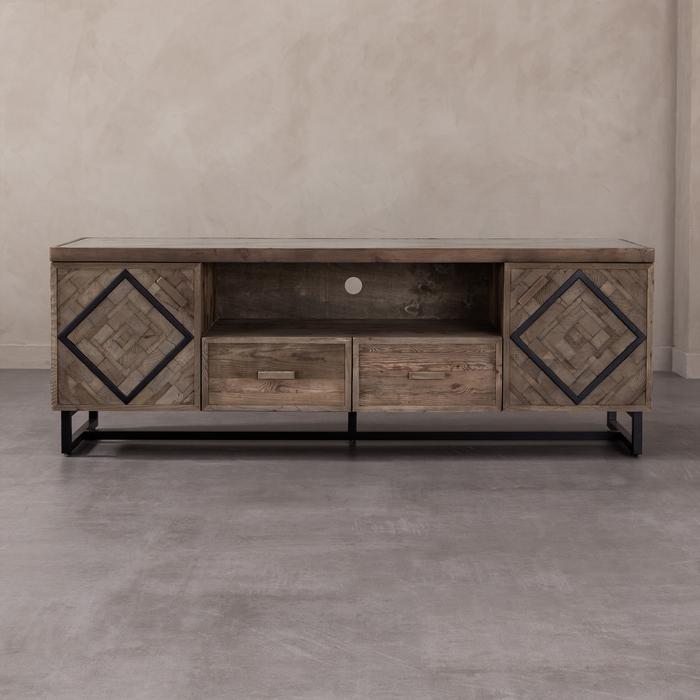 Vertical TV Konsolu, ihtimaşıyla tüm dikkatleri üzerine çekecek! İki çekmece, iki saklama alanı ve iki raftan oluşan ürün, size geniş bir depolama alanı sunuyor. İç genişliğinin haricinde üst tablasının genişliği de ürünü kullanışlı hale getiriyor. Özenle tasarlanan ve üretilen ürünün üst tablasında temperli cam bulunuyor. Özenli bir el işçiliğiyle tek tek eski ahşapların birleşmesi ve geri dönüştürülerek hazırlanmasından oluşan çekmeceli tv konsolu sağlam yapısı uzun ömürlü bir kullanım sunuyor. Siz de Vertical Serisi'ne ait Vertical Yemek Masası ve Orta Sehpa ile salon takımı oluşturabilir, incelikli el işçiliğini yaşam alanlarınıza şık bir bütünlükle dahil edebilirsiniz.