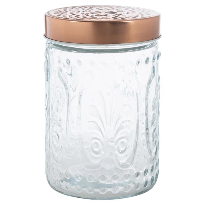 Vintage çizgileriyle kendinden desenli, bronz renkli kapaklarıyla şık bir görünüm yaratan cam kavanoz, mutfaklarınızda fonksiyonel ve şık bir ürün olarak dikkat çekecek. Farklı boyutları bulunan vintage cam kavanozları ister çay şeker kavanozu isterseniz kahve kavanozu olarak kullanabilirsiniz.
