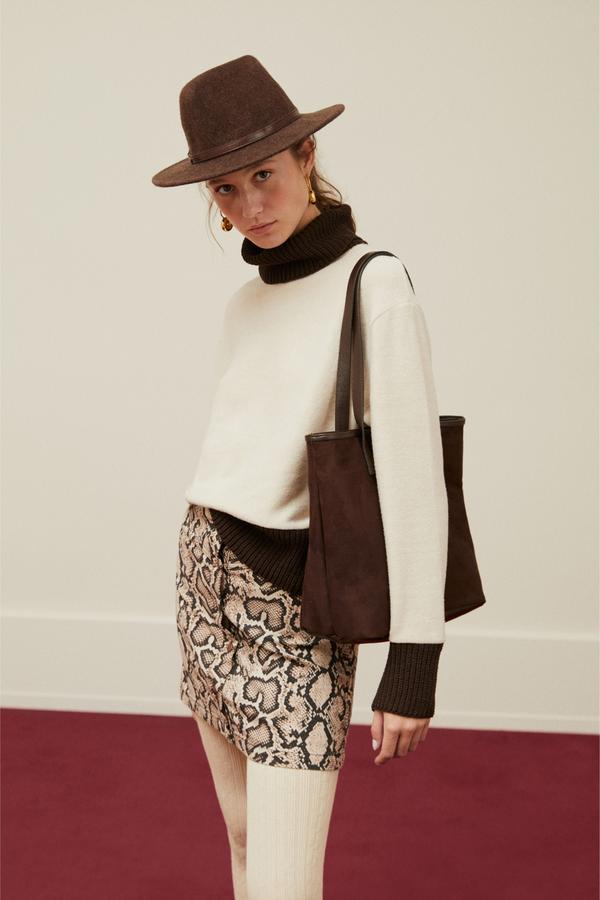 Mudo mini etek modelleri ile feminen ruhunu yansıt. Sezonun trendleri arasında yer alan yılan desenlerine sahip düğmeli a form mini etek modeli, genç ruhunu yansıtacak. Oversize kazaklar ve basıc dar kesim v yaka bluzlar ile oluşturacağın kombinlerini çizmelerle güçlendirebilirsin.