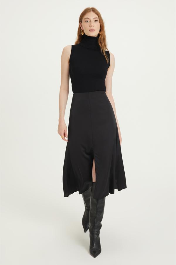 Şık ve zarif midi etek modelleri ile sezonun trend parçalarını kombinlerine taşı. Yırtmaç detayıyla feminen tavrını güçlendirecek midi a form kloş etek ile topuklu çizmelerini kombinleyebilir kaşe palto ve deri ceketler ile modern bir görünüm elde edebilirsin.