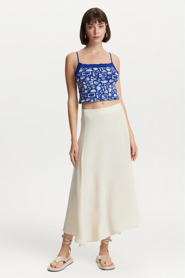 Mudo etek modelleriyle stilini güçlendir. Yalın tasarımı a form kesimiyle dikkat çeken midi etek yırtmaç detayı ile hareketlerine eşlik edecek. Farklı renk seçenekleriyle beğenine sunulan midi eteği crop toplar ile kombinleyerek modern bir görünüm elde edebilirsin.