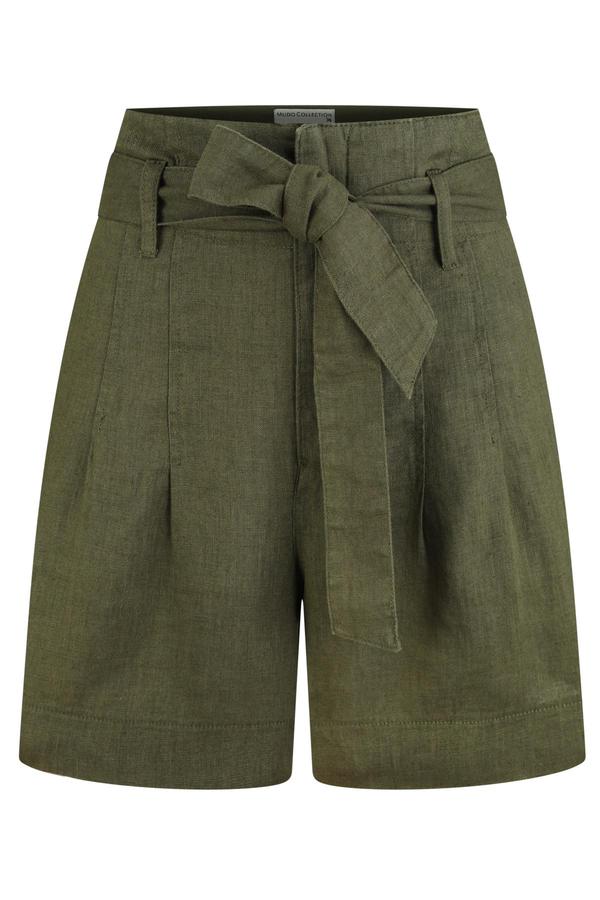 YÜKSEK BEL KUŞAKLI KETEN ŞORT