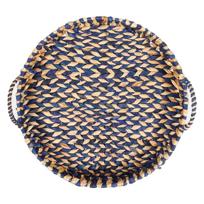 Doğal hasır renkli lacivert boyalı tepsi hem dekoratif hem kullanışlı.