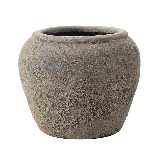 Yuvarlak ve dolgun formu, pürüzlü yüzeyiyle dikkat çeker. Gri, bej ve kahverengi tonlarının hakim olduğu renk paleti, mat ve eskitilmiş görünümüyle birleşerek ürüne özgün bir karakter kazandırır. Bu tasarım, salonunuzda büyük yeşil yapraklı bitkiler için veya balkon ve teras gibi dış mekanlarda mevsim çiçekleriyle doğal bir köşe oluşturmak için uygundur. Belirgin ağız kısmı, bitkilerinizi estetik bir şekilde sergilemenize yardımcı olur.